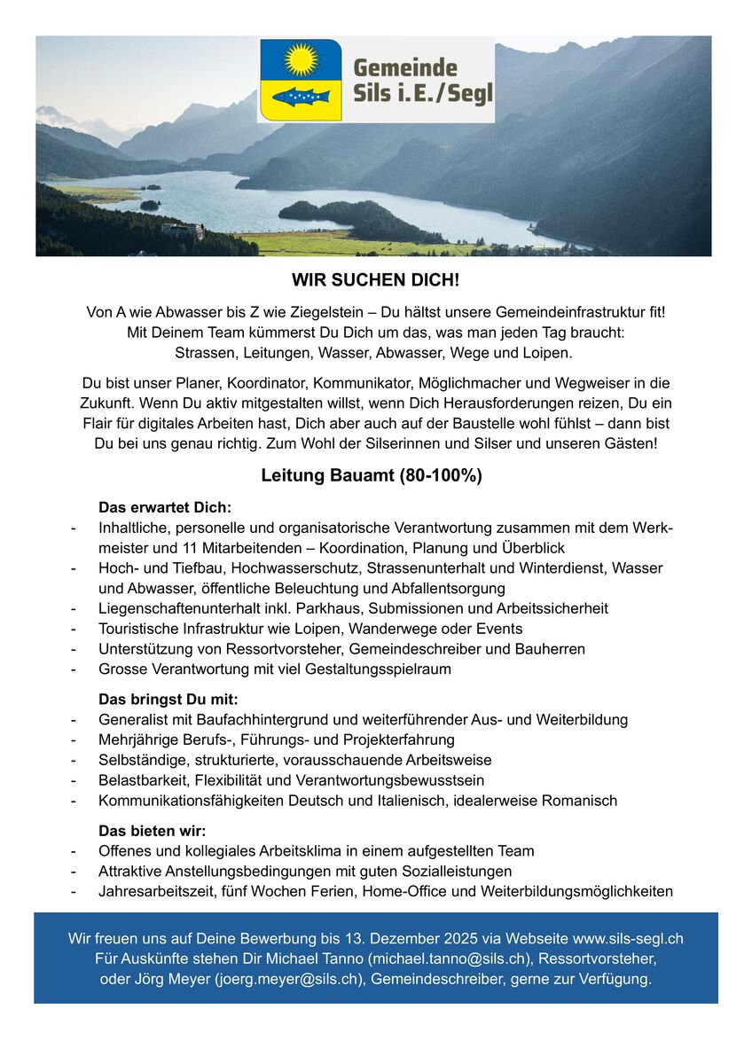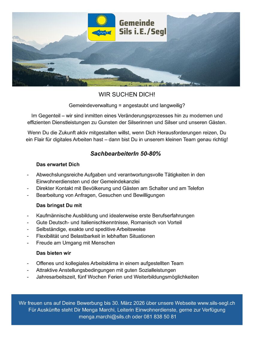 Offene Stellen der Gemeinde Sils i.E. / Segl